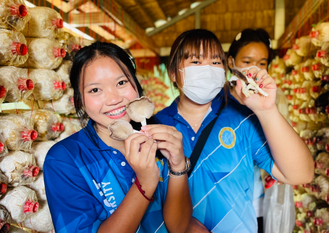 “Homkajan Farm” – a model smart farm for the community located at the Suphunburi Campus and operated by the Research and Development Institute. It serves as a learning center for Smart Agriculture and safe farming, and welcomes study visit groups throughout the year, such as delegations from Nong Chabok Subdistrict Administrative Organization, Nakhon Ratchasima Province, and Bang Pla Subdistrict Administrative Organization, Samut Prakan Province, who come to learn about smart farming technologies, intelligent greenhouse vegetable cultivation, and the Plant Genetic Conservation Project. These activities demonstrate the use of green spaces as platforms for knowledge exchange, livelihood development, and broader social benefit.