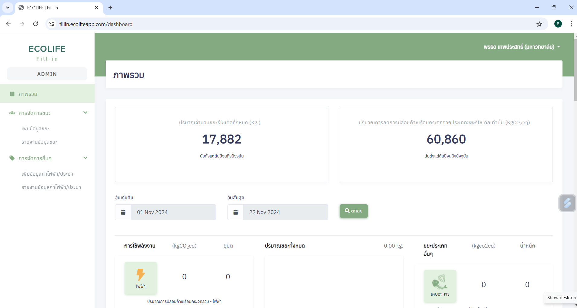 1. การปรับพฤติกรรมด้านสิ่งแวดล้อม เพื่อมุ่งสู่ความเป็นกลางทางคาร์บอนภายใต้แนวคิด “ECOLIFE in U” กระทรวงการอุดมศึกษา วิทยาศาสตร์ วิจัยและนวัตกรรม (กระทรวง อว.) กิจกรรม ภายใต้ความร่วมมือ กับบริษัท คิดคิด จำกัด จัดทำโครงการ “ECOLIFE in U” เพื่อเป็นการรณรงค์ให้เกิดการปรับพฤติกรรมด้านสิ่งแวดล้อมของ อาจารย์ บุคลากร นักศึกษาโดยการบันทึกข้อมูลน้ำหนักขยะขยะรีไซเคิลบน ECOLIFE Fill in ตั้งแต่ปี 2560 ถึง กันยายน 2567 จำนวน 17,882 กิโลกรัม ลดการปล่อยก๊าซเรือนกระจกได้ 60,860 ตันคาร์บอนไดออกไซด์เทียบเท่า