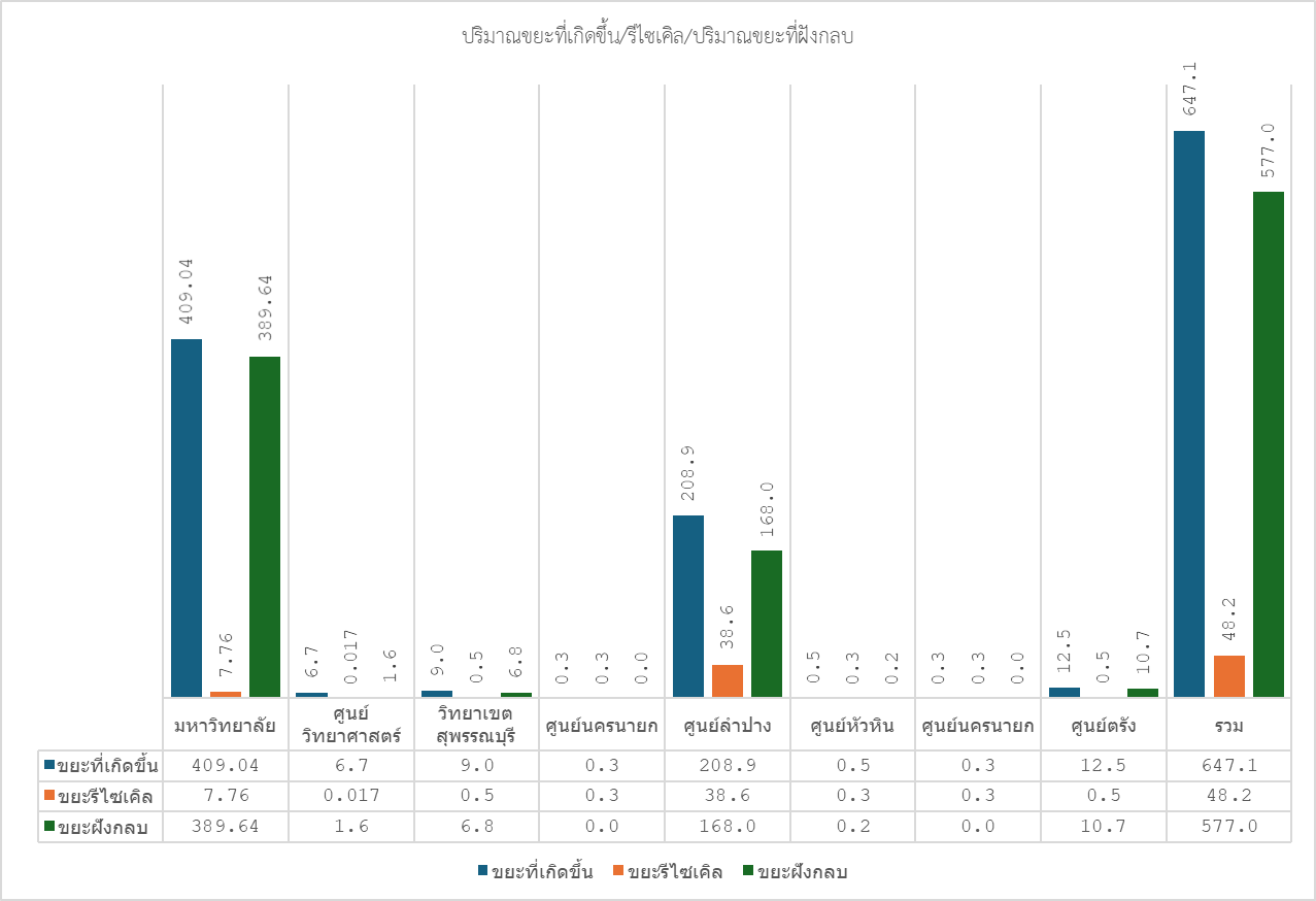 1. โครงการสนับสนุนกิจกรรมลดก๊าซเรือนกระจก (Less Emission Support Scheme: LESS) ด้านการจัดการของเสีย โดยได้รับการประเมินลดก๊าซเรือนกระจกได้ 59.224 ตันคาร์บอนไดออกไซด์เทียบเท่า อีกทั้งได้มีการส่งต่อขยะพลาสติกเข้าร่วมโครงการพลาสติกแบงก์ของมหาวิทยาลัยไปใช้ประโยชน์ร่วมกับโครงการภายนอกต่าง ๆ เช่น Precious Plastic Bangkok, You เทิร์น ของ GC, N15 technology เป็นต้น