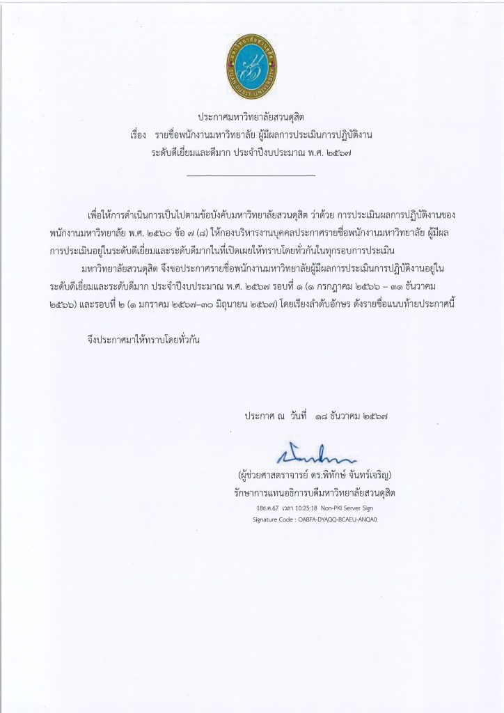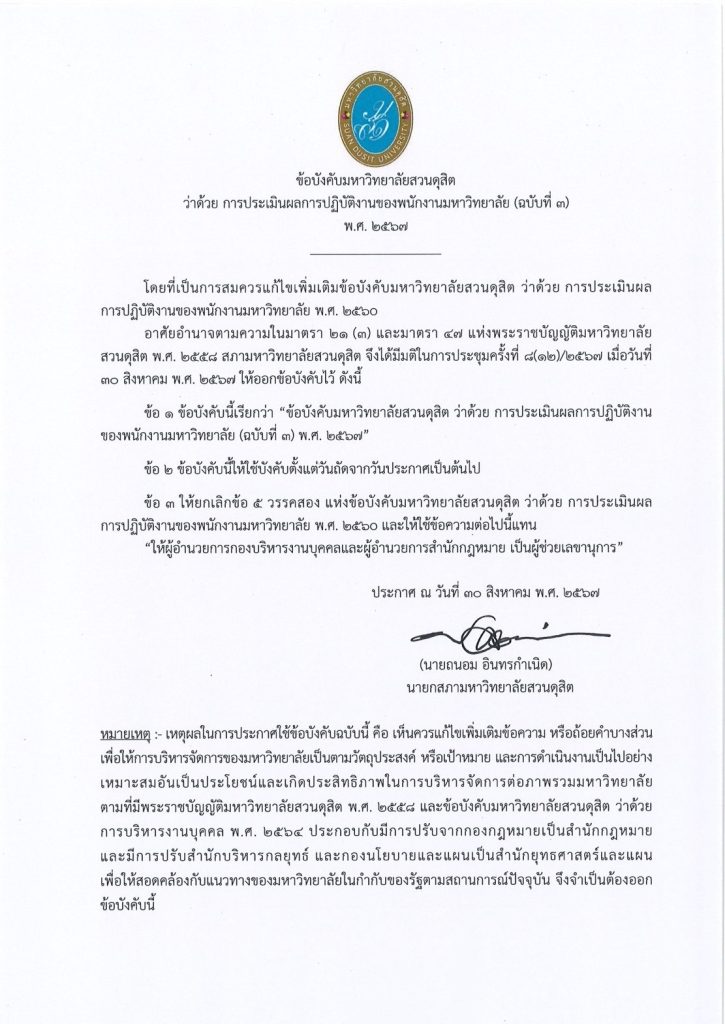 กลไกสำคัญที่สะท้อนเจตนารมณ์ดังกล่าวคือ ระบบการประเมินผลการปฏิบัติงานของบุคลากร ซึ่งกำหนดไว้ใน ข้อบังคับมหาวิทยาลัยสวนดุสิต ว่าด้วย การประเมินผลการปฏิบัติงานของพนักงานมหาวิทยาลัย (ฉบับที่ 3) พ.ศ.2567 โดยมีสาระสำคัญคือให้ทุกหน่วยงานประเมินผลการปฏิบัติงานของบุคลากรอย่างเป็นระบบ โปร่งใส และเป็นมาตรฐานเดียวกันทั้งมหาวิทยาลัย เพื่อใช้เป็นข้อมูลประกอบการเลื่อนขั้นเงินเดือน ค่าตอบแทน หรือการปรับตำแหน่งหน้าที่ ทั้งนี้ มหาวิทยาลัยกำหนดรอบการประเมินปีละ 2 ครั้ง ครอบคลุมบุคลากรทุกประเภท โดยผลการประเมินถูกบันทึกและติดตามโดยกองทรัพยากรบุคคล ซึ่งมีหน้าที่รวบรวม วิเคราะห์ และรายงานผลต่อผู้บริหาร เพื่อใช้เป็นข้อมูลเชิงนโยบายในการบริหารค่าตอบแทนอย่างเป็นธรรม