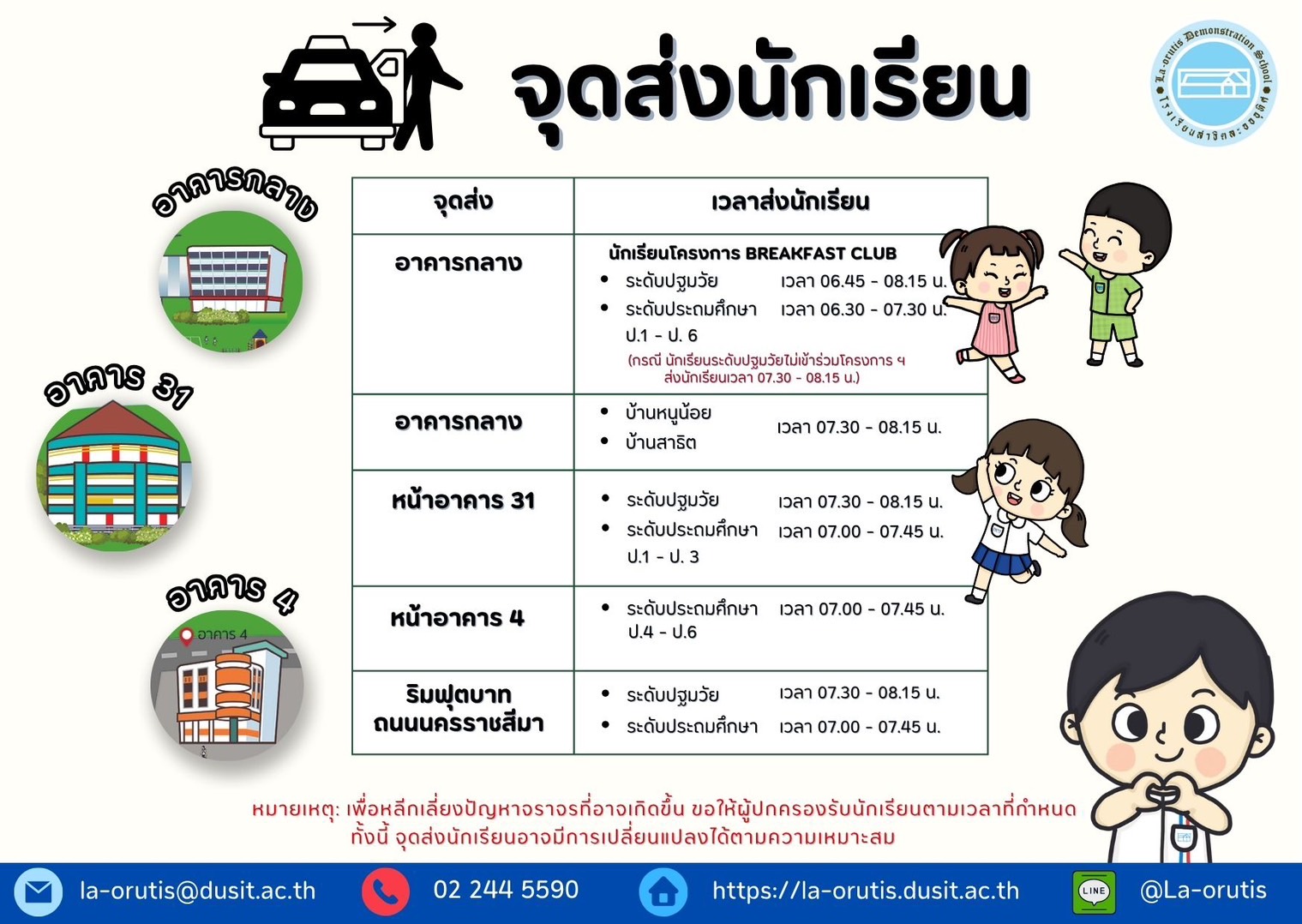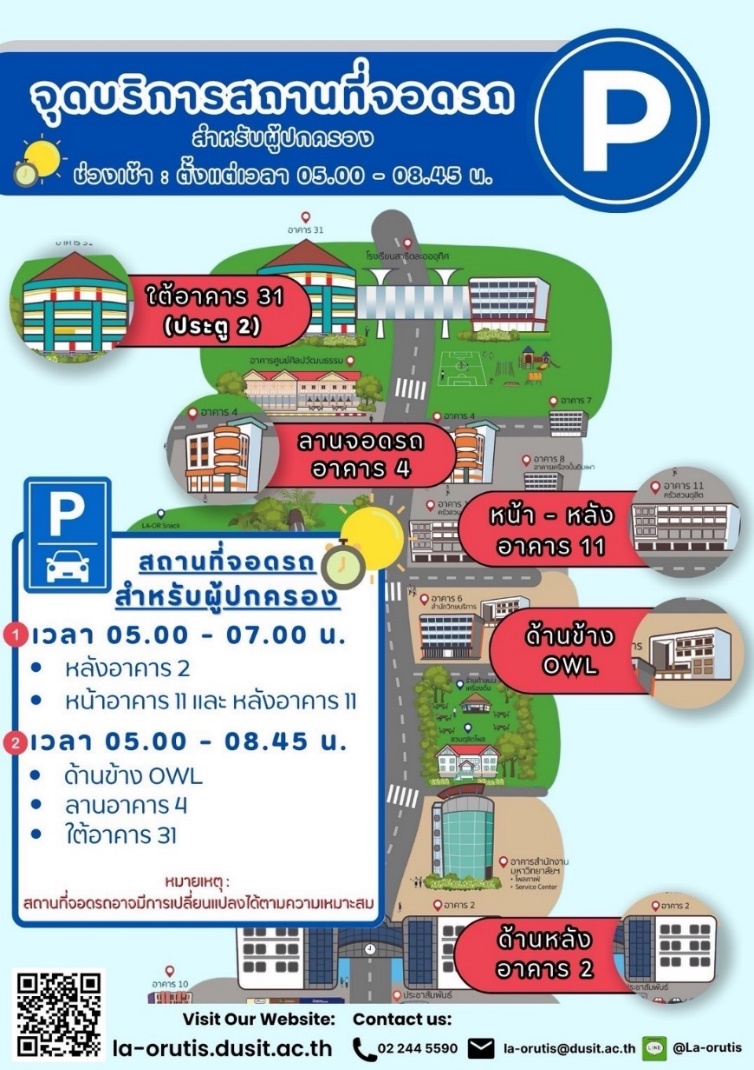 มหาวิทยาลัยออกแบบระบบลานจอด และจุดรับ–ส่งอย่างมีระเบียบ พร้อมจัดบริการรถเวียนและรถรับ–ส่งฟรี ในโอกาสที่มีผู้ใช้บริการหนาแน่น เพื่อลดความแออัดของการจราจร และลดการปล่อยก๊าซคาร์บอนไดออกไซด์จากการใช้รถยนต์ส่วนตัว ในขณะเดียวกัน โรงเรียนสาธิตละอออุทิศได้กำหนดแนวทางการรับ–ส่งนักเรียนอย่างปลอดภัย จำกัดจุดจอดและให้ผู้ปกครองปฏิบัติตามเจ้าหน้าที่จราจร เพื่อรักษาความเป็นระเบียบและความปลอดภัยของนักเรียนทุกคน https://la-orutis.dusit.ac.th/39027.html/